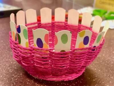 Learn how to make a colourful bowl out of a paper plate and some yarn.